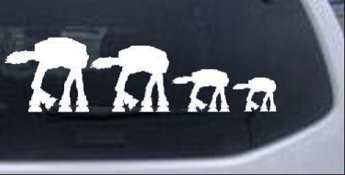 AT AT Star Wars Stick Family Cartoons Car or Truck Window or Laptop Decal Sticker -- White 10.5in X 3in If this listing does not show Ships from and sold by Rad Dezigns it is COUNTERFEIT and a COPYRIGHT VIOLATION. When making your color choice please be aware that our decals do not have a background or background color at all. These are decals not stickers. . When applied all you will see is the outline as shown in the images. If the decal will be going on glass you will want to use a bright color like white, yellow or pink. Black and other dark colors will not show up well on glass. Our decals are die cut from solid 2.8mil vinyl. The vinyl is rated at 5yrs outdoors. Our decals can withstand cold, hot and wet weather with no problem. If you are using the decal inside they will pretty much last as long as you want them. The decals can be removed from any surface but cannot be reused once removed. If applied to a painted surface such as a wall or auto body the paint may come off with the decal when removing it. Our decals can be applied to any smooth flat surface including car, truck, van and suv windows. Our decals can also be used on the body or hoods of automobiles like sports cars, race cars and trucks. You can even use our decals on your motor home or camper. Our decals can also be used for wall art. You can apply any of our decals to the walls in your home, office or garage to add whimsical art. You can also use our decals to personalize your laptop or books. Our decals make great laptop skins. Other places you could use our decals include - horse trailers, kayaks, boats, vans, motorcycles, ATVs, snowboards, snowmobiles, surfboards, RVs, helmets, glass doors, gun cabinets, mirrors, walls, mailboxes, picture frames, tool boxes, painted wood, aluminum, plastics, fiberglass etc...