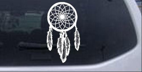 Dreamcatcher Western Car or Truck Window or Laptop Decal Sticker -- White 6in X 3.3in If this listing does not show Ships from and sold by Rad Dezigns it is COUNTERFEIT and a COPYRIGHT VIOLATION. When making your color choice please be aware that our decals do not have a background or background color at all. These are decals not stickers. . When applied all you will see is the outline as shown in the images. If the decal will be going on glass you will want to use a bright color like white, yellow or pink. Black and other dark colors will not show up well on glass. Our decals are die cut from solid 2.8mil vinyl. The vinyl is rated at 5yrs outdoors. Our decals can withstand cold, hot and wet weather with no problem. If you are using the decal inside they will pretty much last as long as you want them. The decals can be removed from any surface but cannot be reused once removed. If applied to a painted surface such as a wall or auto body the paint may come off with the decal when removing it. Our decals can be applied to any smooth flat surface including car, truck, van and suv windows. Our decals can also be used on the body or hoods of automobiles like sports cars, race cars and trucks. You can even use our decals on your motor home or camper. Our decals can also be used for wall art. You can apply any of our decals to the walls in your home, office or garage to add whimsical art. You can also use our decals to personalize your laptop or books. Our decals make great laptop skins. Other places you could use our decals include - horse trailers, kayaks, boats, vans, motorcycles, ATVs, snowboards, snowmobiles, surfboards, RVs, helmets, glass doors, gun cabinets, mirrors, walls, mailboxes, picture frames, tool boxes, painted wood, aluminum, plastics, fiberglass etc...