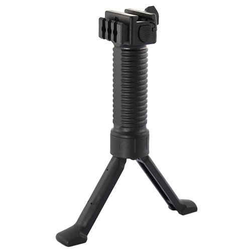 This vertical fore-grip integrated with a strong and stable bipod.The Grip Pod¡¯s legs deploy at the push of a button-instantly.Push Button to unlock Bipod Legs, and retract the Spring Loaded Legs by pushing back in. It mounts directly to Weaver/Picatinny rail systems.