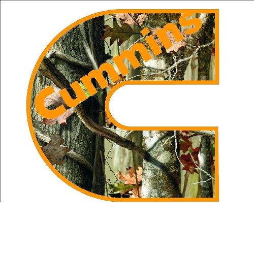 This decal / sticker is a very cool spin on the Cummins decal. Camo goes with everything!!!! It measures 9.70"W X 9.70"H.